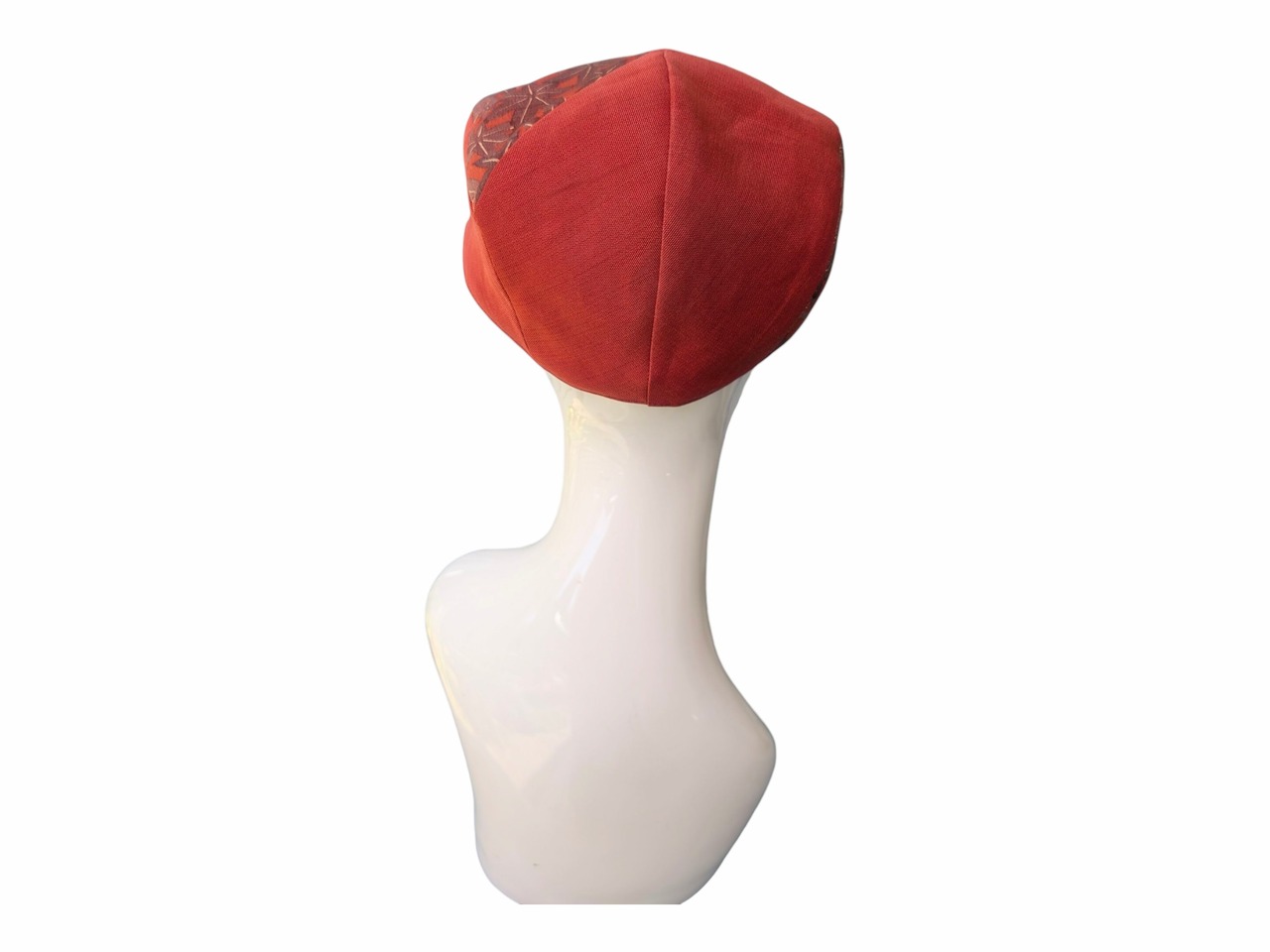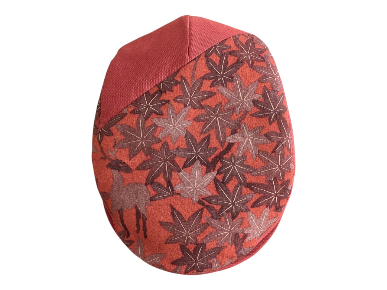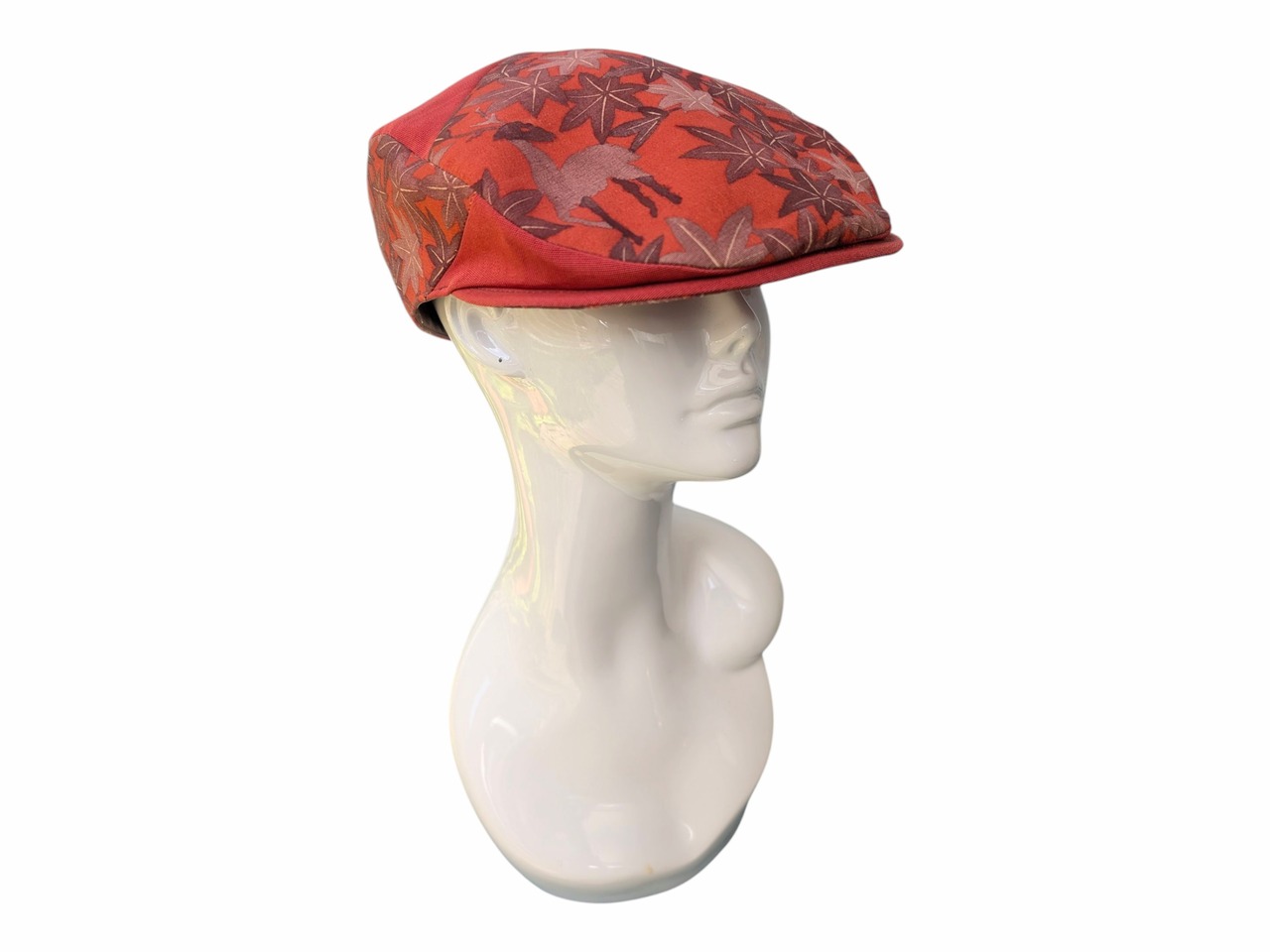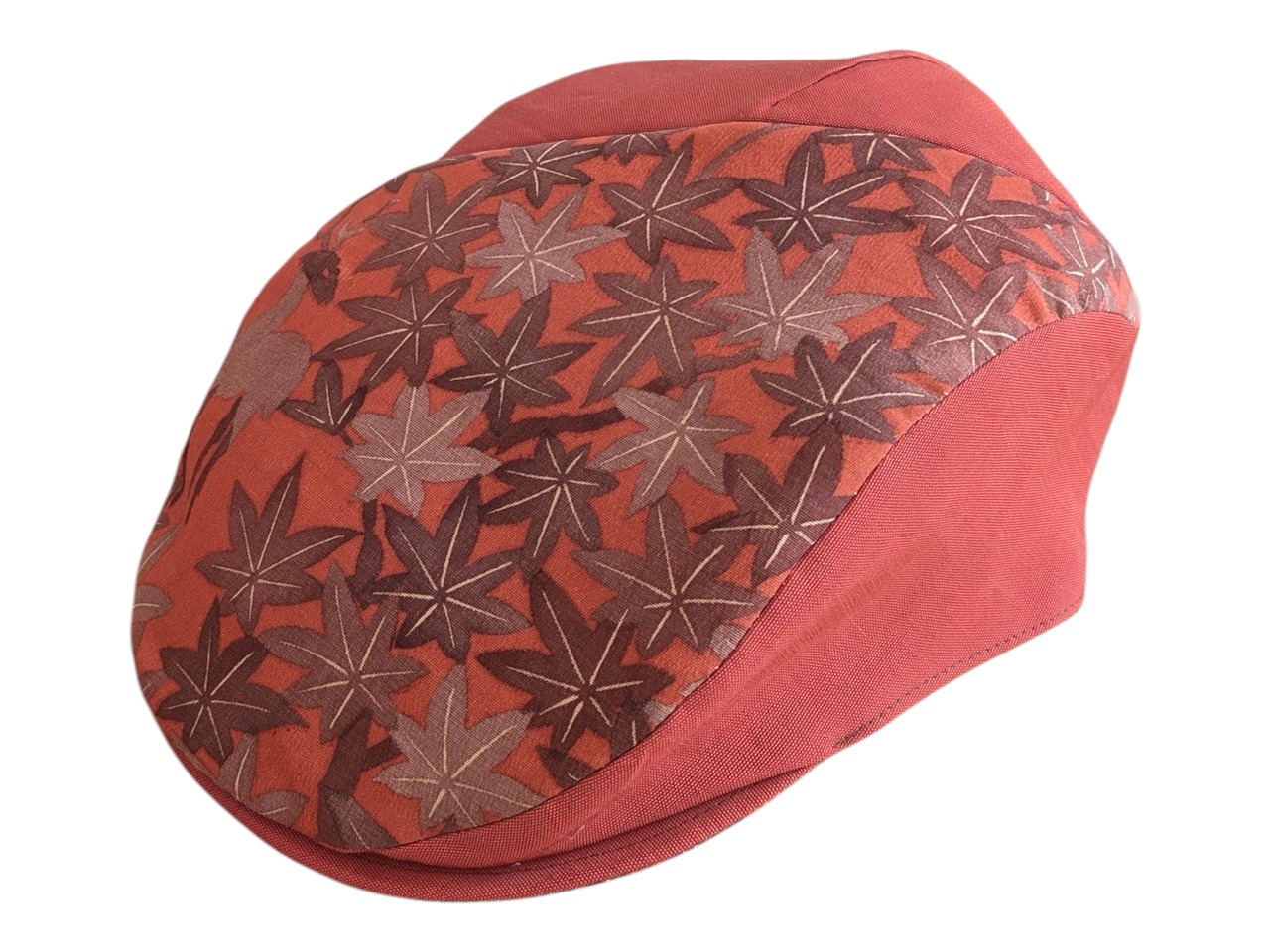 紅葉柄の紬と無地の帯をリメイクしたハンチング帽です。